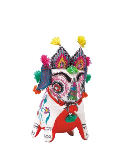 在端午节俗中,虎的形象扮演着重要的角色。它以勇猛、强健的身姿,震慑、庇护的效力,深受人们的喜爱。早在先秦时期,老虎“性食鬼魅”的说法便在民间盛行。《山海经》中叙述,度朔山上有两位神仙神荼、郁垒,镇守万鬼之门,凡遇恶鬼出入,便用苇索捆绑送去喂虎。在人们的心目中,猛兽成为了人们防御凶邪的“守护神”。千百年来,这种观念左右着人们的民间美术创作活动,使得老虎成为民间剪纸、刺绣、年画、泥塑等品类中的重要题材。