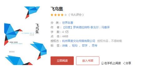 因为押韵,冯唐的译诗读起来琅琅上口,富有节奏感,很适合作为歌词。据了解,目前国内已有多位音乐人向冯唐提出了申请,希望能将冯译的《飞鸟集》改编成民谣歌曲,并由当红民谣歌手演绎,加上disco风格的编曲,相信一定能在未来的广场舞界占有一席之地。