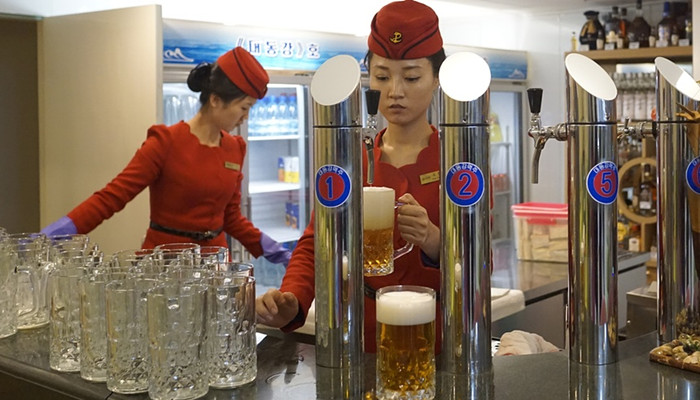 朝鲜还有一些卡拉OK,人们可以在那里喝酒,但是他们得藏着掖着,好像在公开的市场上贩卖酒水是违法的一样。