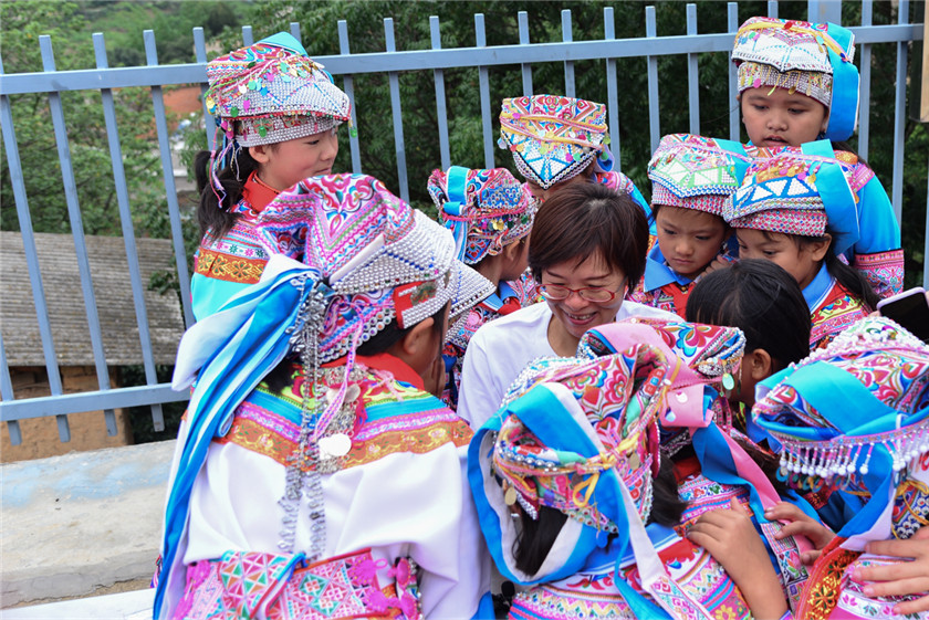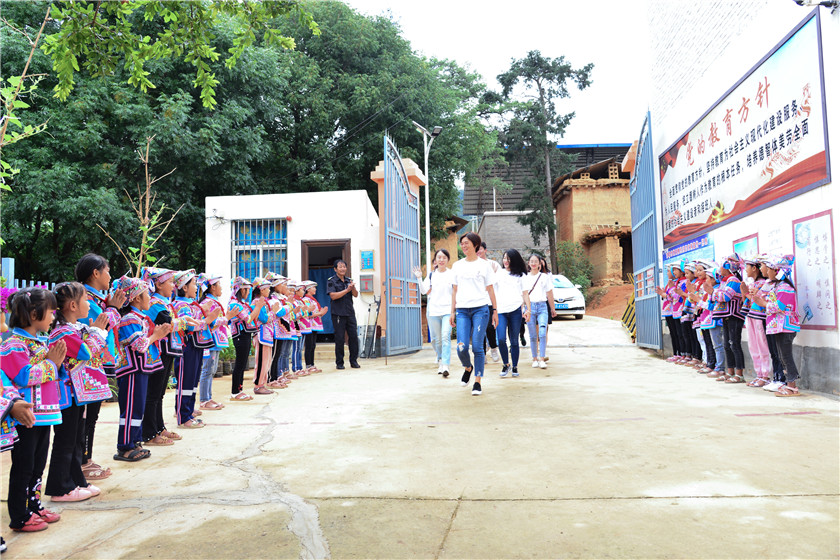 2020年8月6日,在集团助理总裁汤筱娟的带领下,中骏集团公益团一行从上海到昆明、到红河州、到弥勒市、到巡检司镇、到己白村,飞机、巴士、徒步,跨越2300公里,翻越重重山峦,来到一座位于西南高原上的彝族小学——己白小学。同行的还有中华思源工程扶贫基金会·新浪扬帆公益基金的伙伴,以及活动特邀的云南省南社研究会会长李啸云女士、民建红河州委专职副主委邱康女士。大家跋山涉水就是为了来看望这里59名彝族孩子。