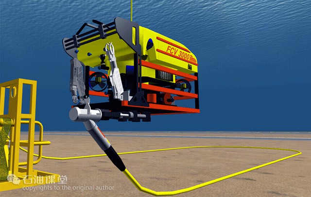 ROV可以进行地貌调查、辅助导管架就位、引导插桩、支持灌浆作业、完成水下切割、水下焊接等作业。导管架安装过程详见石油课堂001期文章:人类伟大工程 深海油气开发。
