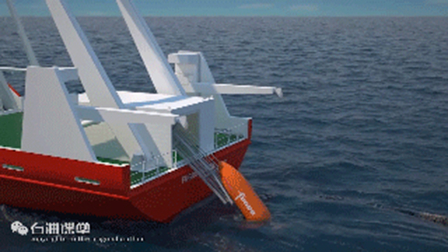 当ROV开始下潜准备作业时,中继器可以和ROV一起吊放至作业深度,之后中继器放出ROV,开始作业。借助中继器的重力下潜,既节省了能量,也提升了下潜的速度。