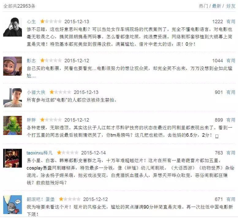 一方面,我们所说的影片口碑,往往都以豆瓣电影评分、知乎回答和影评人的评价作为重要参考标准。影评人对电影要求一向严苛,豆瓣电影是个众所周知的文艺青年集中地,知乎则向来以“高逼格”著称。而以屌丝、夸张二次元为核心向粉丝的《万万》,本来就不是这几个社群盘里的菜。