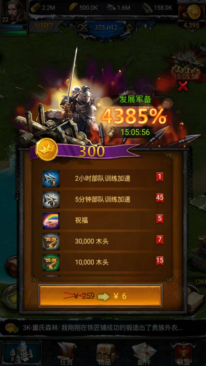 在平衡免费玩家、中小R、大R方面,COK做得还是挺狠的。游戏中金币作用非常有限,如果你看到一个大R,那他一定交了大量的钱。实际上如果你充了2、3千的钱,所起到的作用并不大,主要是我们有一个手很紧,又特别抠门的主策。