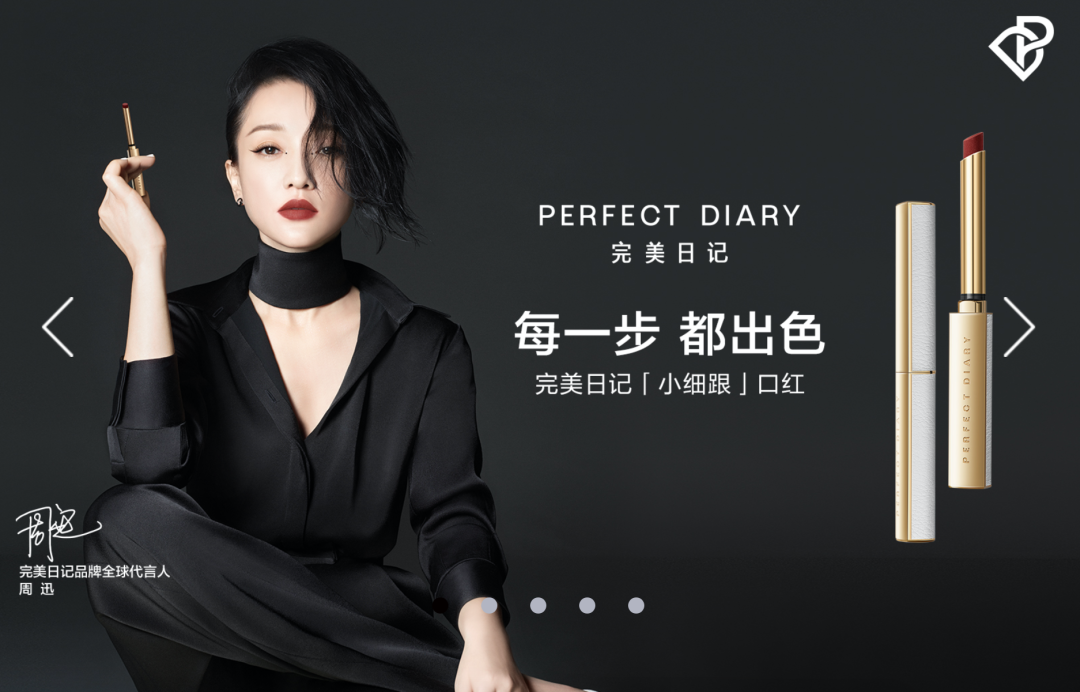 而从具体动作来看,完美日记反常地启用了大牌明星代言人。10月19日,完美日记官宣周迅担任其首位全球代言人,这也是完美日记成立以来首位品牌代言人。