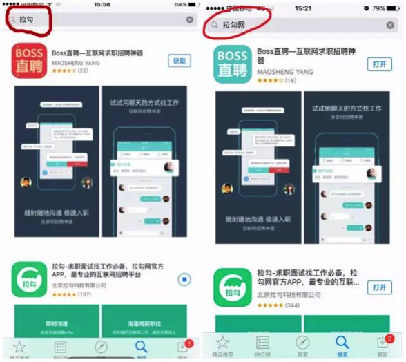 临近求职高峰期,各大招聘网站除了在线下铺张广告,线上的推广力度自然少不了,App Store作为iOS唯一官方渠道,曝光位的抢夺更为激烈,这也是两家不折手段推广的背后深层原因。