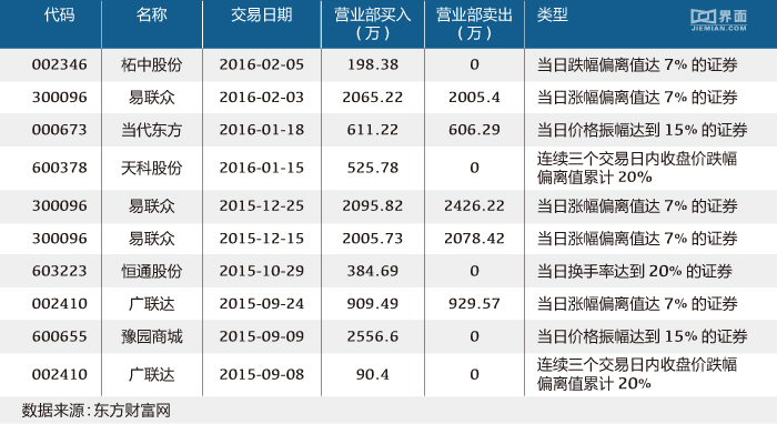 银河证券厦门美湖路从2015年下半年开始几乎消失在龙虎榜中。