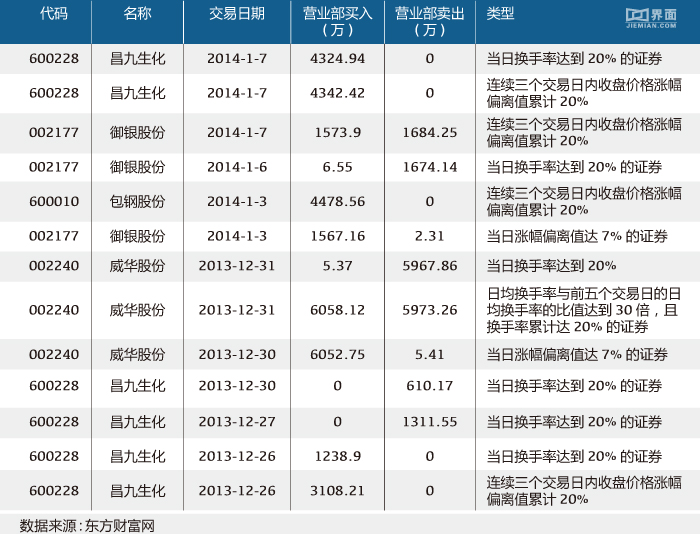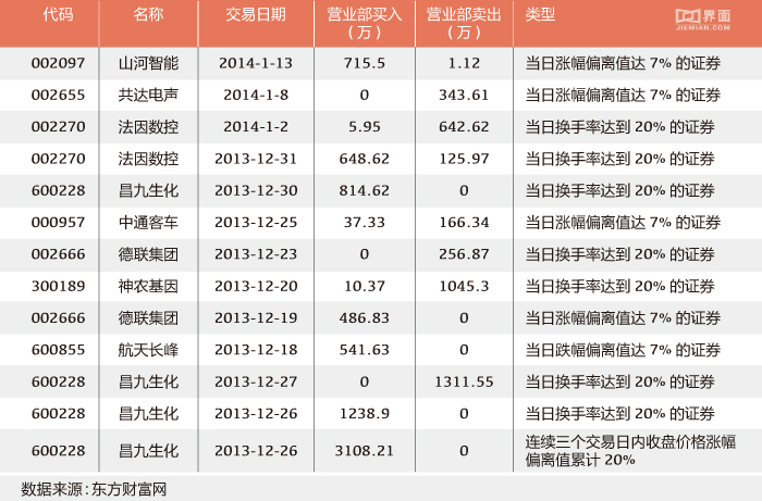 而在2014年年初左右,该营业部的上榜次数与金额则是另外一番景象: