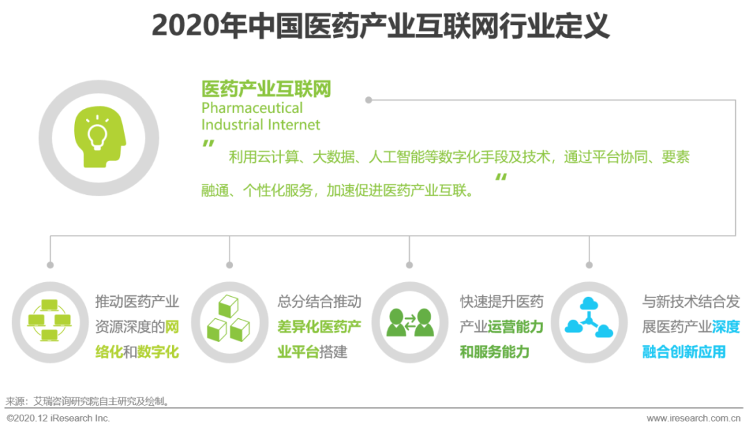 医药产业互联网是以医药企业为中心,依托新一代信息通信网络促进供给侧与需求侧的深度对接,通过资源数字化推动产业链上下游的生产要素互通共享,实现产业互联、平台协同、要素融通,进而面向产业生态链、供应链的各类产业成员,提供医药生产全要素、医药制造全流程、医药企业全生命周期服务的产业协同互联生态网络。医药产业互联网围绕医药产业,驱动全要素、全产业链、全价值链的深度互联,推动生产和服务资源优化配置,促进制造体系和服务体系再造。