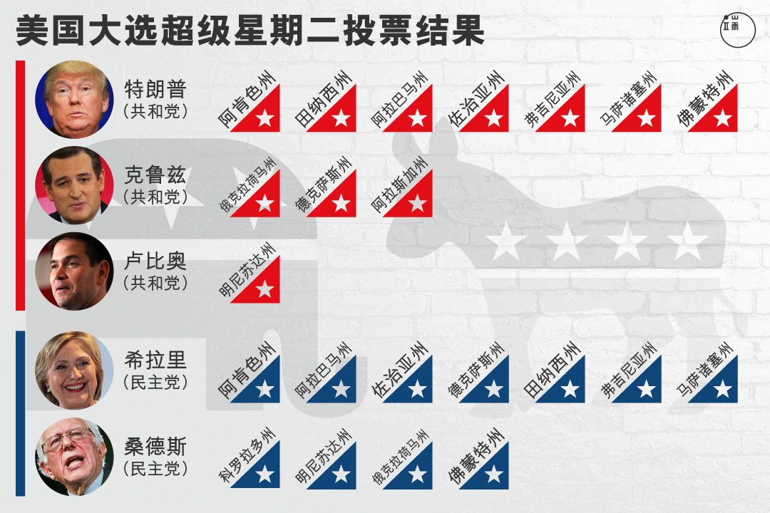 “超级星期二”,常被称为美国总统选举的“初选分水岭”。这一次,在投票的10个州中,特朗普一举拿下七个。这个口无遮拦、怪招频出的参选人,起初仅仅被视为选举中的一个笑话,现在却拿下实实在在的选票,势不可挡地朝总统之位迈进。