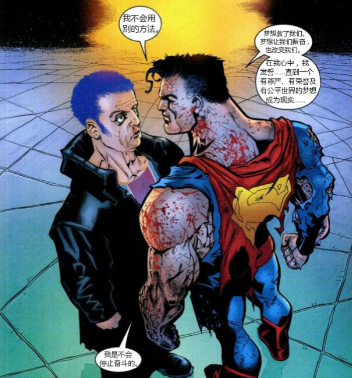 超人知道他不是人类,但是他努力成为人类。如果他觉得没有必要,他就不会使用他克拉克的秘密身份。但是他也拥有超越凡人的力量。为了维护人类,他有非常严格的界线,他不能跨越。