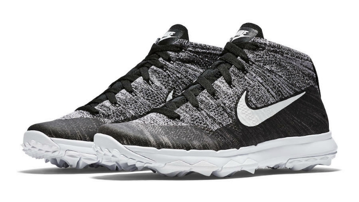 售价190美元的中高帮鞋子,Nike Flyknit Chukka Men's Golf Shoe,该鞋款运用了耐克品牌知名的编织技术,提升了脚部舒适度和透气性能。