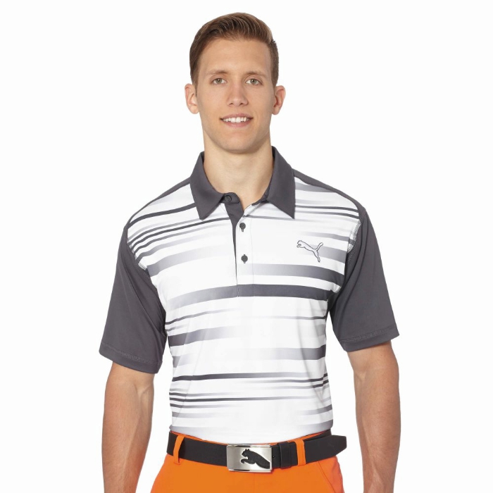 售价52.50美元的上衣,Puma #GoTime Blur Stripe Golf Polo,在瑞奇·福勒的身上,你总能看到各种条纹、圆点和花纹图案。