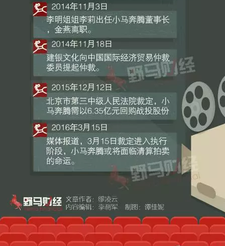 “我觉得我们在最好的时间错过了几次机会,至少三次”,小马奔腾辉煌过后,钟丽芳曾黯然感慨。前文提到的金燕曾依照李明生前的安排,引入华人文化产业投资基金接盘建银文化的股份,应该是小马奔腾走上良性发展的第四次机会,而金燕发在朋友圈“尽了最大的努力挽回,希望在小马坠落的悬崖边最后拦截一下”的内容,则向人们展示了那被错过的第五次机会。