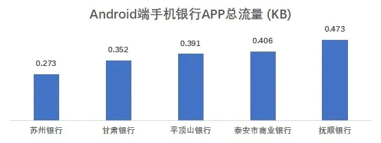 73家城商行安卓和IOS客户端APP网络流量普遍在可接受范围内,与去年同期数据对比流量消耗明显提升。在安卓客户端,手机银行APP运行时2分钟随机点击消耗总流量是0.273KB到810.851KB不等,平均消耗74.073KB,中位数为3.507KB,最高为810.851KB。其中,苏州银行手机银行APP流量消耗最低,运行时流量消耗仅为0.273KB。
