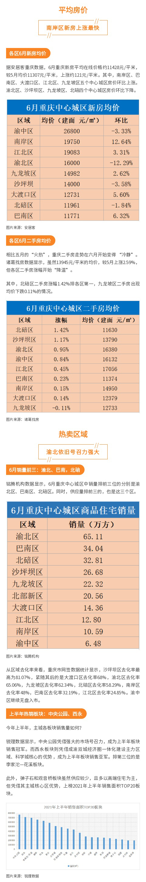 随着6月结束,2021年上半年也画上句号。6月份,重庆房价的涨跌情况如何,哪些区房价涨幅快?2021年上半年重庆楼市表现如何?