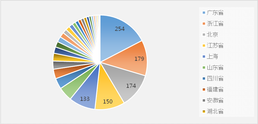 全部2843家上市公司,集中分布在广东、浙江、江苏、北京、上海以及山东6个省市级区域,合计1665家,占比58.56%。事实上,这6个省级区域也是中国经济最发达的地区,GDP总额位居全国前列。