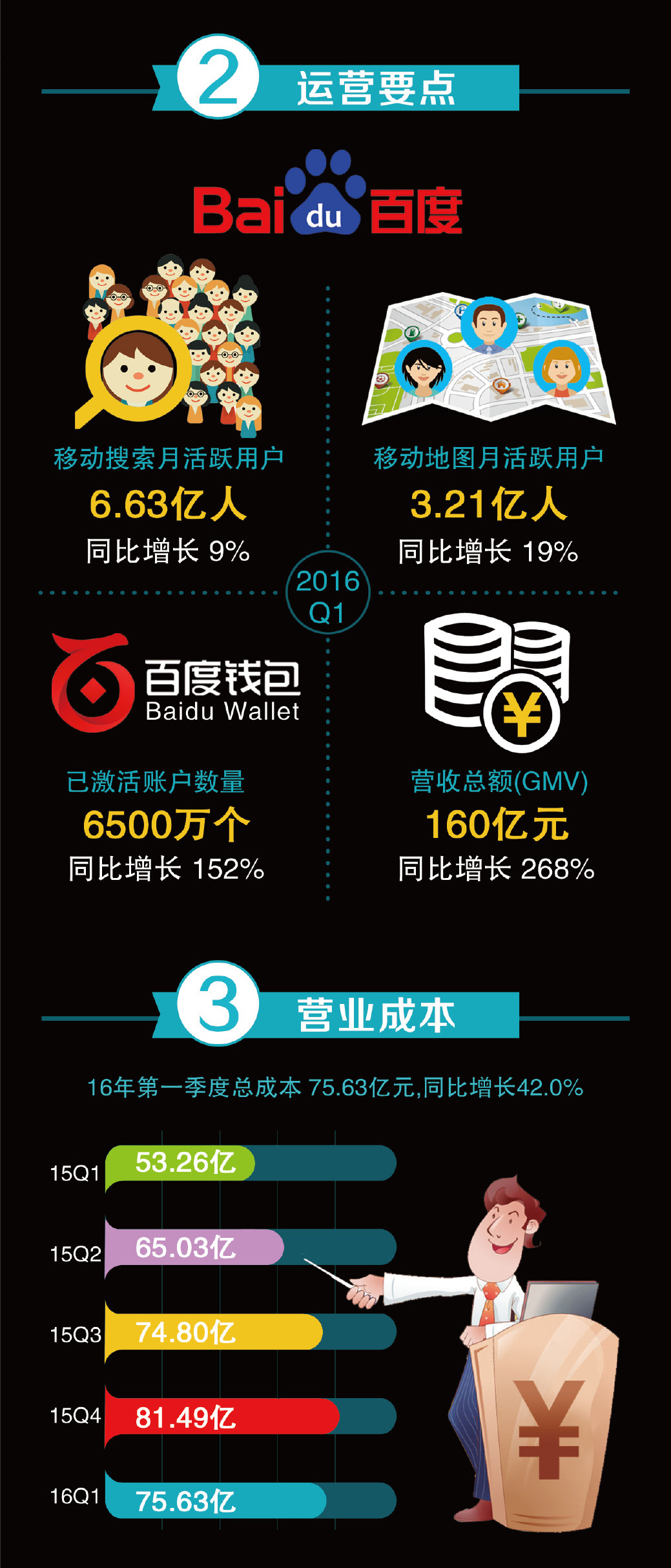 从百度发布的2016年第一季度财报来看,虽在盈利,但同比下滑。