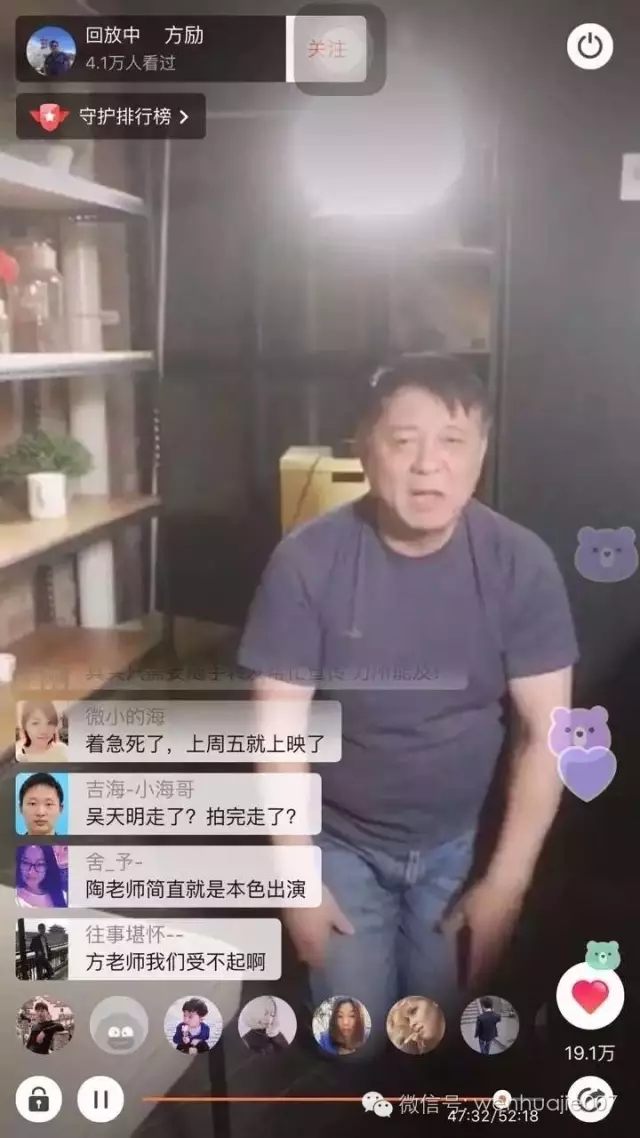 方励:吴老肯定不会这样做。说实话,我今天本来想做直播是为吴老,更重要的是为大量看不到的观众。多少个日日夜夜跟大家在一起,大家都没有报酬,全部是志愿者。现在的排片,基本都是早上7点20,8点多的,好一点的是九点多,10点,基本上没有黄金档,很多人下班看不到,所以我呼吁,最后一次机会,这个周末看不到就没了。