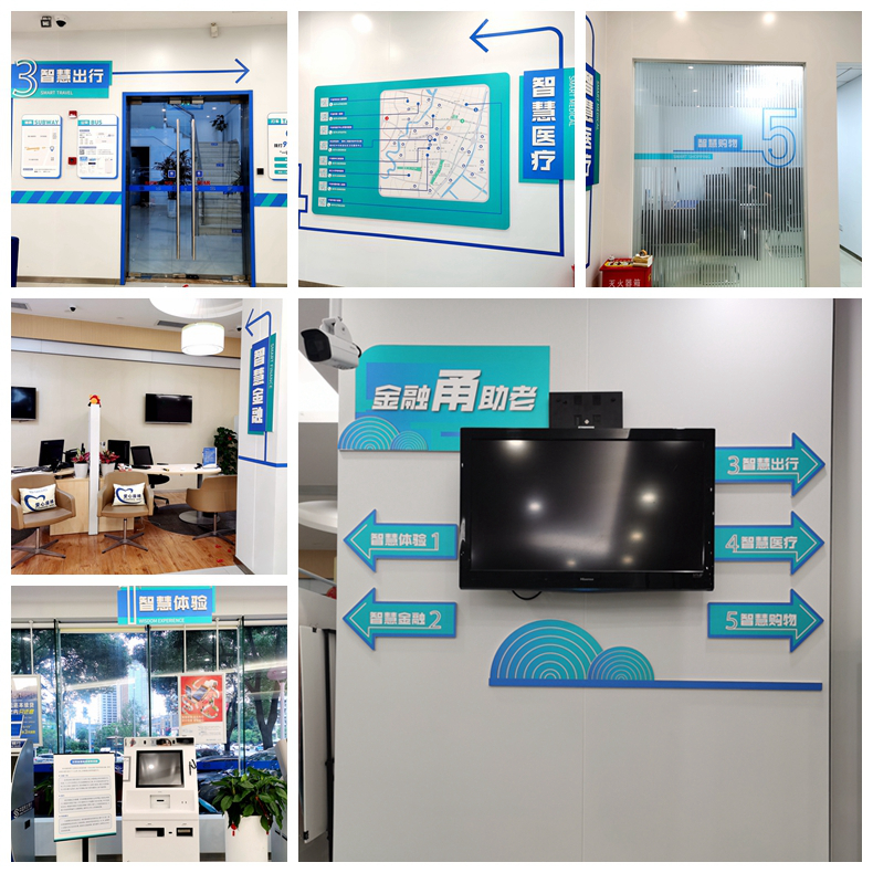 一走进嵩江路支行网点可以看到金融甬助老“五大体验区”指示牌。在智慧体验专区,设置了老年优先指示牌、大字版操作说明及随处可取的老花镜等,并配备助老服务专员,协助客户进行金融自动设备体验及操作;在智慧金融专区,为老年客户提供专业的金融理财服务,并耐心为客户介绍大字版手机银行、一键客服呼叫服务等特色服务,让老年客户在家足不出户就能享受金融服务,针对部分老年客户因特殊情况不能亲自到银行办理业务的情况,该行还可以为客户提供上门服务,为客户解决燃眉之急;在智慧出行专区,围绕地铁、公交、出租三大出行方式,进行现场体验教学,帮助老年客户运用智能手机解决出行难题。在智慧医疗专区,展示了以支行为中心的宁波大市核心特色医院,并放置了各医院的公众号二维码、服务热线,引导老年客户进行扫码识别,并现场教学智能手机操作如何挂号、查看专家等。在智慧购物专区,准备了支付宝、微信的使用教程,并放置了云闪付的二维码及礼品,客户可以体验使用,并学习线上购物。