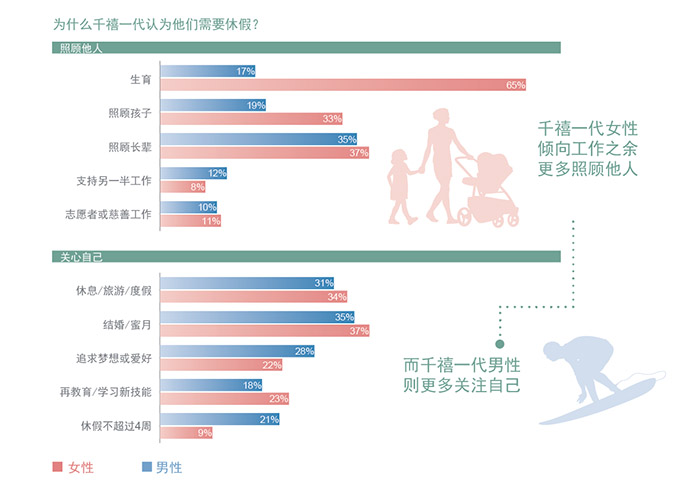 不要误会,这些年轻人并没有把自己困在工作中,他们渴望通过努力得到回报,从事业中获取安全感并同时拥有选择休息和工作的自由。85%的受访者允许自己享受4周以上的假期,32%的人正在计划假期休息、旅游和度假。