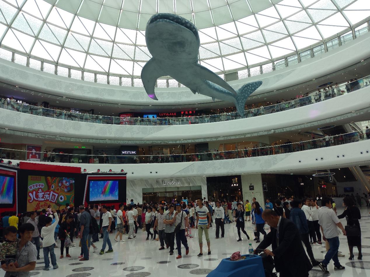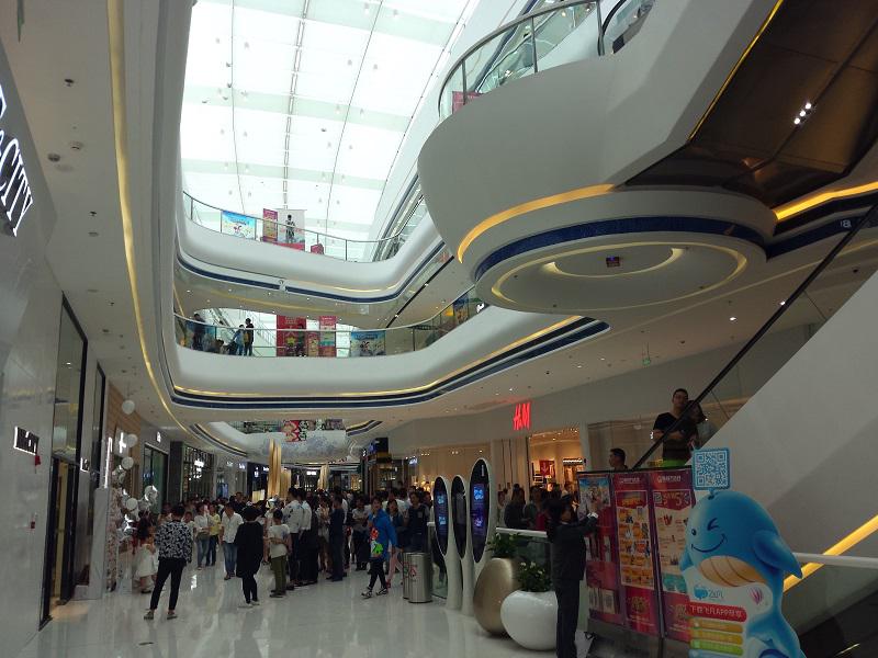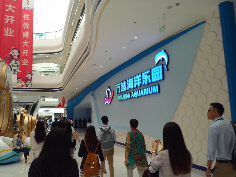 值得一提的是,因为被海洋乐园、电影乐园以及位于三楼的万达影城占据了大部分面积,这座外形独特的万达茂尽管从外面看起来非常巨大,但实际商场内部也只是“一条路走到黑”的长廊式设计,与大多数万达广场并无二致。
