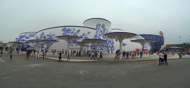 这幢由26个巨大青花瓷罐组成的商业中心总建筑面积将近10万平方米。为了凸显江西的陶瓷文化,组成这幢建筑的每个罐体都拥有不同的主题图案,比如花开富贵、金玉满堂、松龄鹤寿等等,图案均出自江西知名艺术家何炳钦教授之手。
