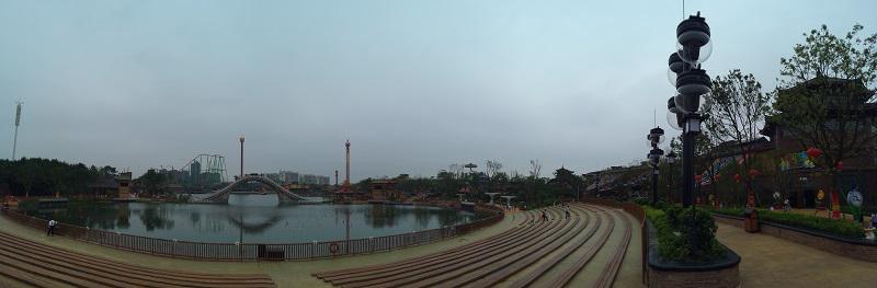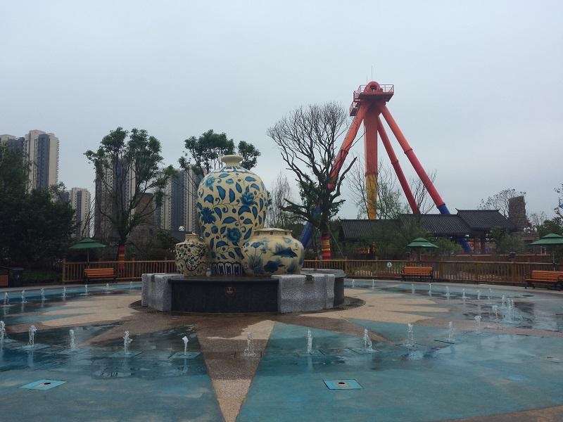 游乐设施里,最高轨道达77米的云霄飞车、总长1558米的全木质结构过山车、以及时速高达136公里的中国最快悬挂式过山车是园区内的亮点。此外,尽管没有万达此前力推的秀,但几个演艺厅内分别设有展现当地瓷文化的穿越舞台剧《瓷都历险记》、介绍竹文化的《竹林通话》以及被万达官方冠以压轴大戏的晚间水上声光秀《桃之恋》。