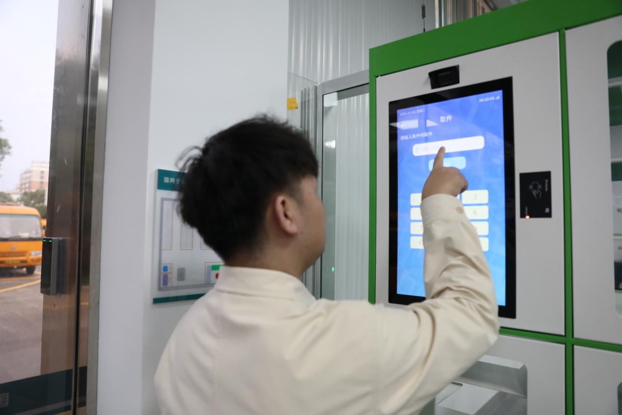 智能继保生产仓自主创新定制了全自动仓储集成方案,由移动终端软件系统、智能控制系统、投料机器人、自动分拣系统、出入库快递柜系统、监控系统等多部分组成,对物料领用、仓储入库等全流程进行数字化改造升级。领用人仅需在移动终端上完成出库单的创建,随后智能控制系统便可根据物资编码对物料进行分拣,投料机器人根据系统指令快速、准确地将物料运送至快递柜内,领用人收到取件码后就可以进行取件。