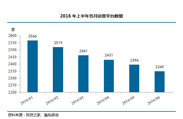 截至2016年6月底,正常运营平台数量2349家,这一数据在半年前的2015年年底为2595家。网贷之家预计,未来正常运营平台数量仍然将进一步下降。