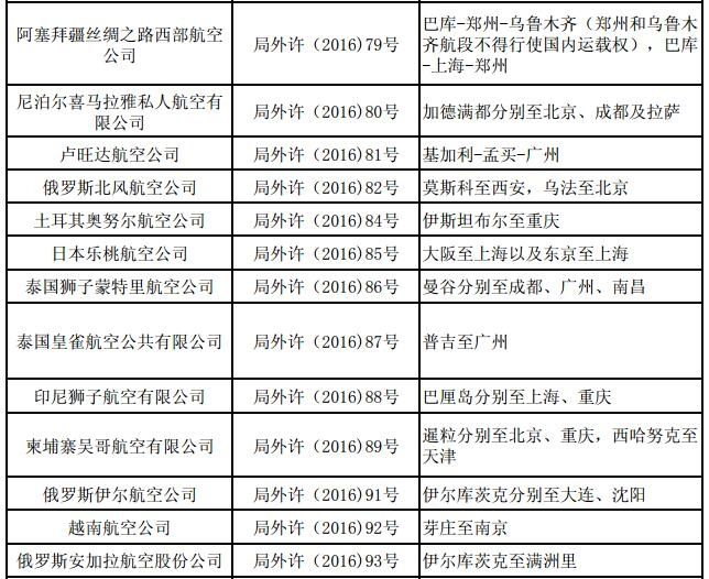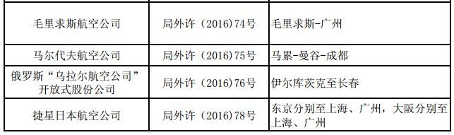 根据中国民航局发布的《关于2016年第二季度颁发的国际航线经营许可信息通报》,今年第二季度民航局共向49家航空公司(16家国内航空公司,33家外航)颁发了国际航线经营许可,涉及航线132条(外航67条,国内航空公司65条),其中包括6条全货运航线。