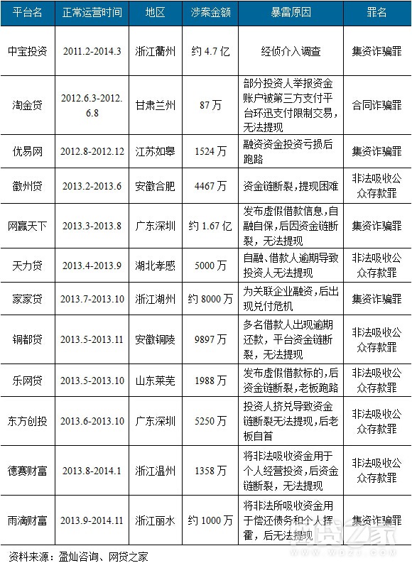 在12家已宣判的P2P网贷平台中,优易网、中宝投资、网赢天下、雨滴财富、家家贷5家平台实际控制人在运营过程中发布虚假借款信息,以高额回报为诱饵,吸引投资人投资,但平台实际控制人却将非法所吸收资金用于购置房产、购买高档车辆、偿还个人债务、其他经营投资以及个人生活挥霍等,被判集资诈骗罪;而淘金贷实际控制人则以非法占有为目的,在签订、履行合同过程中,骗取他人钱财,数额巨大,被判为合同诈骗罪;东方创投、天力贷、德赛财富、乐网贷、徽州贷、铜都贷6家平台实际控制人被判非法吸收公众存款罪。