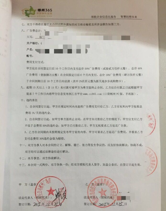 另一位受骗公司的负责人听闻后表示,说八家公司涉嫌违法签订合同就要拿出证据,步步高管理人员的说法毫不负责。他称,“从郴州步步高开业到现在,我们一共做了超过40场的活动,公司内部管理出现了纰漏跟我们并没有关系。”