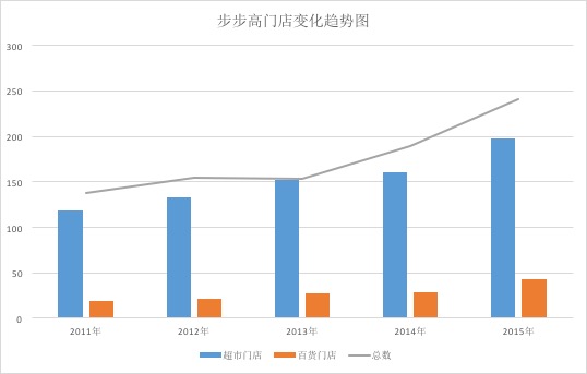 2013年底,步步高成立了网上商城云猴网;2014年步步高斥资15.7亿元并购广西南城百货;2015年牵手万达扩大资源库,并筹划非公开发行募资25亿元用于电商平台的开发、连锁门店的发展等。为了实现线上线下的联动,步步高也加快了线下门店的铺设。
