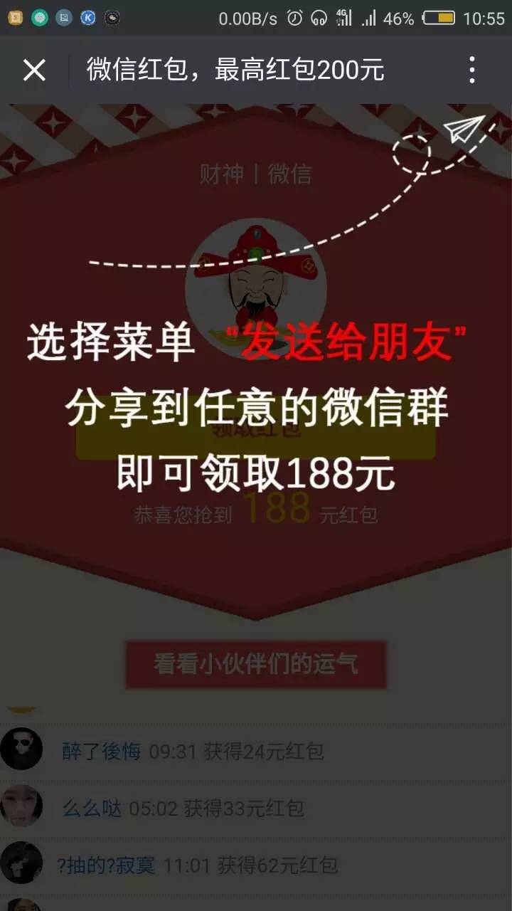 不过,万一真有红包得,就可以拿着这 188 元,带小伙伴们出去团建了。