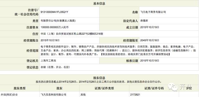 而八姐有查询了下,当初这三家注册的公司实际是这家:飞凡电子商务有限公司。在这家注册资本为10个亿的公司中,腾讯和百度的高管还赫然在列。飞凡电子商务有限公司的投资人为外资公司“飞凡信息科技有限公司”,这家外资公司的香港注册信息也并未显示近期做过股东变更。