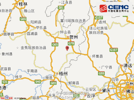 中国地震台网正式测定:07月31日17时18分在广西梧州市苍梧县(北纬24.08度,东经111.56度)发生5.4级地震,震源深度10千米。