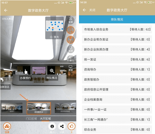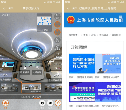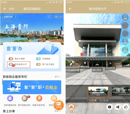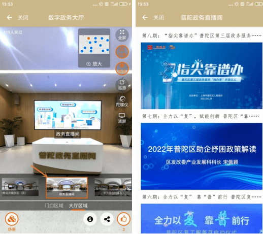 日前,普陀数字政务大厅已在“随申办”APP-普陀旗舰店正式上线!以实景拍摄的形式,720度全方位全景展示,将政务服务中心实体大厅的环境、办事区域等直观、全面地展示在移动端上。