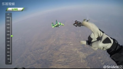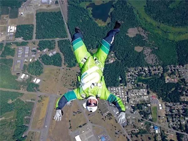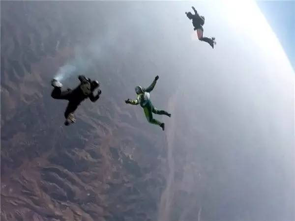 出舱40秒后,Aikins在距地面6000米的高空达到了降落最高时速241公里,相当于急速行驶的高铁的速度。