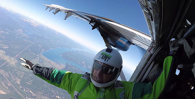 即将跃出机舱的那一刻,Luke Aikins仍然处于紧张状态!但观众表示根本看不出来。