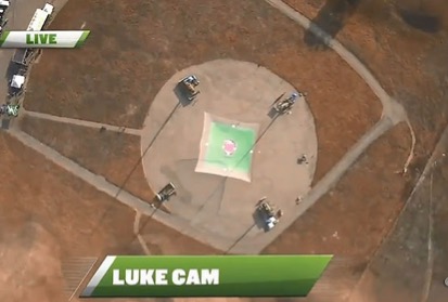 最后60米,Aikins以稳定时速193公里,及时翻身,收紧下巴,背卧安全着网。这张降落安全网有三分之一个足球场的大小,四周设置了引导路线的照射灯,一旦Aikins发生路线偏移,将以闪烁的红灯持续提示。