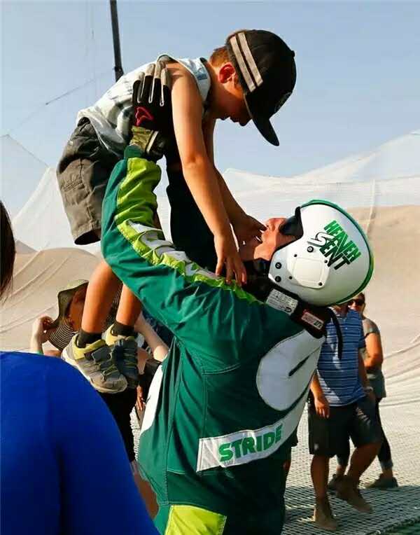 兴奋高举着自己孩子的Luke Aikins出生于跳伞运动员世家,从16岁开始其职业生涯第一跳。即便拥有过硬的专业素养,此次挑战也是经过长达2年的身体素拓与设备调试等准备才得以实现。