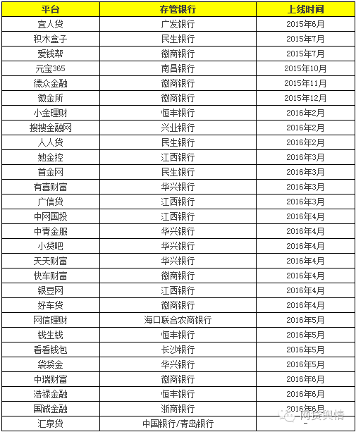 1、经媒体报道或平台宣称已上线银行存管系统的平台(统计截至时间6月29日):