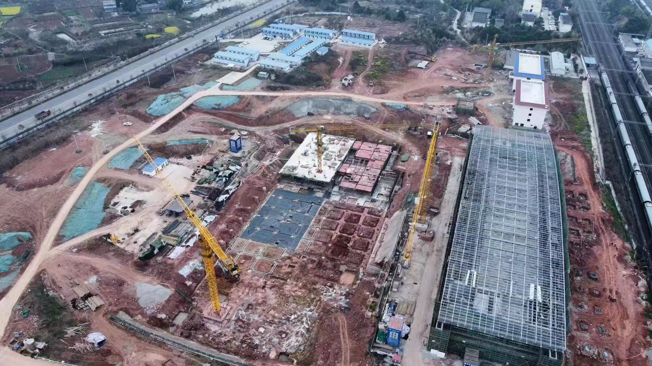 200吨钢筋、2000平方米的铝板几天内将陆续运抵工地,60名工人将上岗作业……金堂淮口南站综合交通枢纽现场建设热火朝天。挖掘机、推土机的轰鸣声不绝于耳,塔吊挥舞着钢筋铁臂运送建筑材料。一座两层高的现代化站房雏形初现,工人们正加紧进行外立面施工。