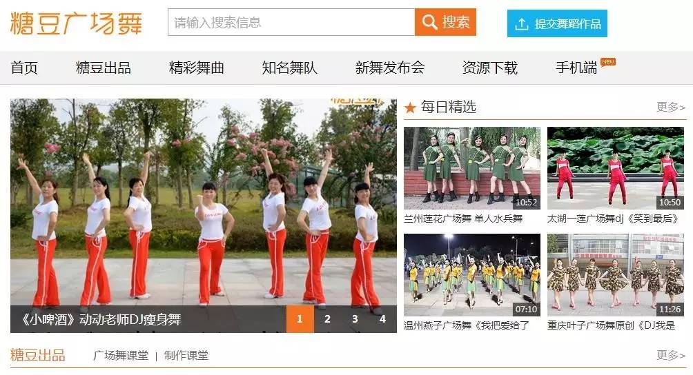 从视频入手的糖豆广场舞,由于有着领先3到4年的内容和用户积累,已经成为国内最大的广场舞视频网站,拥有超过200万条广场舞精品专题、数千名广场舞老师,每日覆盖人群和播放量都超过百万。2015年4月糖豆转战移动端,推出糖豆广场舞APP。