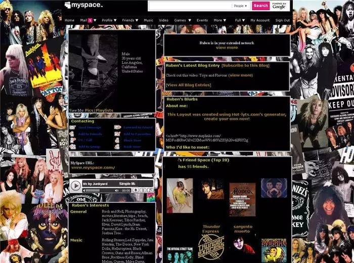 而且,汤姆也真的做到了,我的地盘听我的,他允许每一个 Myspace 用户,自定义主页的风格(就像之后大家熟悉的 QQ 空间换皮肤)。