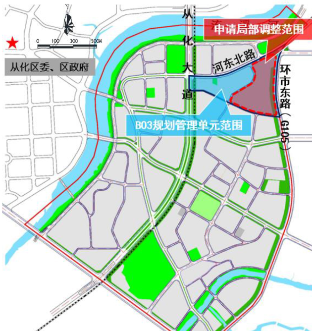 10月19日,从化区河东旧城片区(B03规划管理单元)控制性详细规划局部调整方案在广州市规划和自然资源局网站上进行征询意见公示。