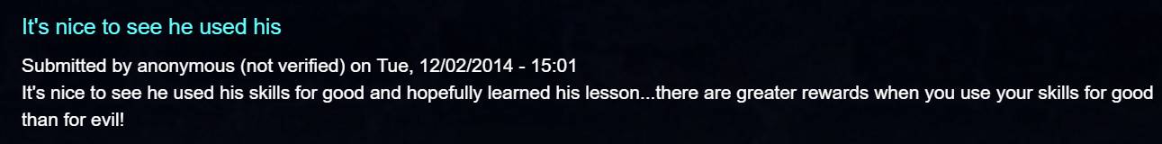 (大概意思是说很高兴看到波尔森能把自己的技术用在好事上而不再是用在犯罪上)