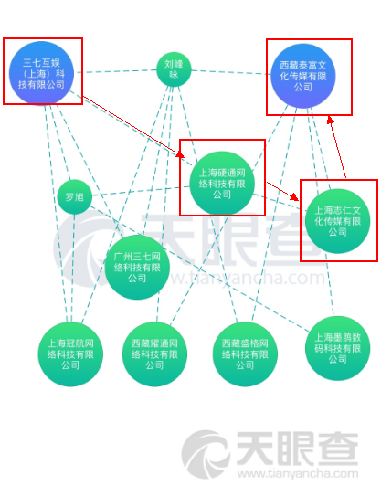 但是在被收购前夕,深圳墨麟就已经将两家颇为赚钱的游戏公司一一出售,究其原因势必与公司想要营造出“盈利”的财务数据有关。此外根据交易预案披露,游戏公司的交易对方也与其股东方有着联系。墨麟股份在今年2月将子公司上海墨鹍30%股权以4亿的价格转让给西藏泰富文化传媒有限公司(下称西藏泰富)。而界面新闻从天眼查的数据显示,西藏泰富的经理刘峰咏,正是三七互娱(上海)科技有限公司(下称三七互娱)的监事,三七互娱更是通过上海硬通网络科技有限公司、上海志仁文化传媒企业两家公司间接持有西藏泰富的股权。也就是说深圳墨麟将上海墨鹍30%的股权卖给了三七互娱。三七互娱又是深圳墨麟的股东,其持有深圳墨麟公司1.95%的股份。这种左手倒右手的手段在资本市场并不少见。