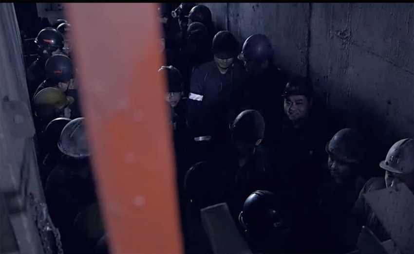此时,张克良和工友们已经检查好身上的穿戴,列队来到矿井口集合。队长点完名之后,矿工们分两层被装进大罐,铁栅门哐一声合上,大罐启动,缓缓向矿井下沉去。